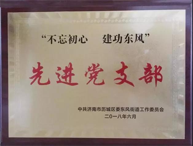 2018年6月30日,在建黨97周年之際,中共濟南市歷城區(qū)委東風街道工作委員會舉辦了“不忘初心,建功東風”表彰先進暨獻禮七一活動,沃爾德集團黨支部被授予“先進黨支部”的榮譽稱號。