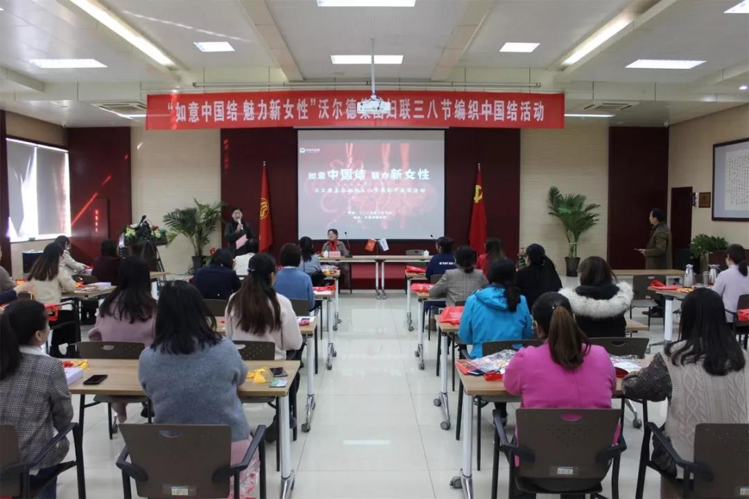 三八婦女節(jié)來臨之際,為豐富女職工的文化生活,沃爾德集團(tuán)婦聯(lián)組織開展了以“如意中國結(jié),魅力新女性”為主題的編織中國結(jié)活動。活動邀請到中國結(jié)藝傳承人、濟(jì)南市十大民間藝術(shù)家、濟(jì)南市婦聯(lián)巾幗建功標(biāo)兵、三八紅旗手尹崇芹老師進(jìn)行教學(xué),集團(tuán)婦聯(lián)主席、辦公室主任李群及30多位女職工參加活動。