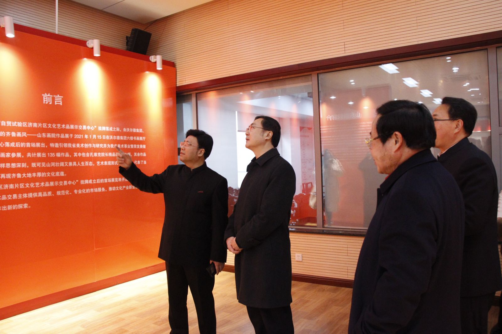 2021年1月22日下午,“自貿(mào)試驗(yàn)區(qū)濟(jì)南片區(qū)文化藝術(shù)品展示交易中心掛牌活動(dòng)”在沃爾德集團(tuán)隆重舉行。市委常委、宣傳部部長楊峰,市委常委、自貿(mào)試驗(yàn)區(qū)濟(jì)南片區(qū)管委會(huì)主任、濟(jì)南高新區(qū)管委會(huì)主任王宏志,全國政協(xié)委員、中國美協(xié)理事、民革中央畫院院長、山東省中國畫學(xué)會(huì)會(huì)長、山東畫院院長孔維克,市政府副秘書長、自貿(mào)試驗(yàn)區(qū)濟(jì)南片區(qū)常務(wù)副主任劉艷秋,市委宣傳部副部長趙善海,濟(jì)南日?qǐng)?bào)報(bào)業(yè)集團(tuán)副總編輯馬凱,市文化和旅游局黨組副書記、副局長蘇文,沃爾德集團(tuán)董事長林擘,金諾國拍集團(tuán)董事長商雪梅等出席活動(dòng),金諾國拍集團(tuán)總裁位琳主持活動(dòng)。