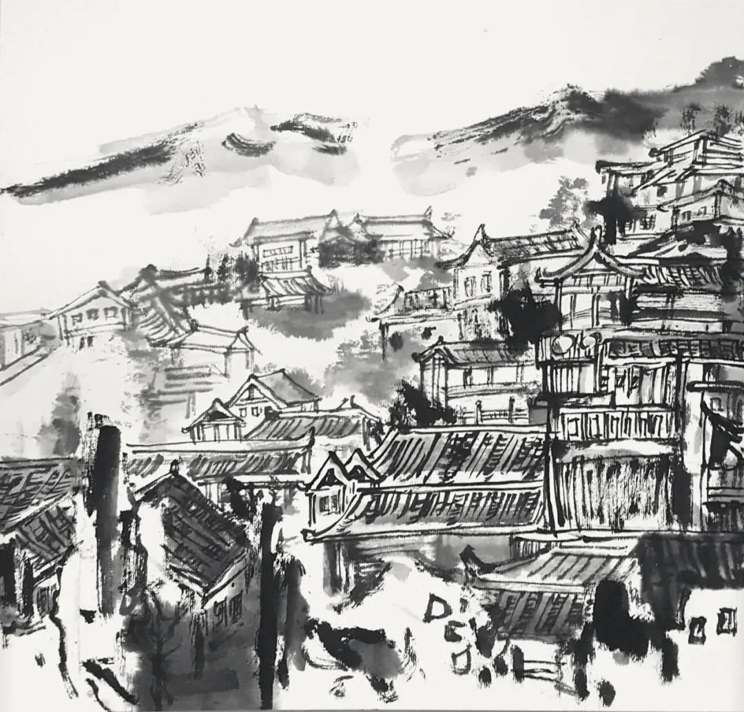 劉書(shū)軍《鎮(zhèn)遠(yuǎn)縣青龍洞古建筑群寫(xiě)生》