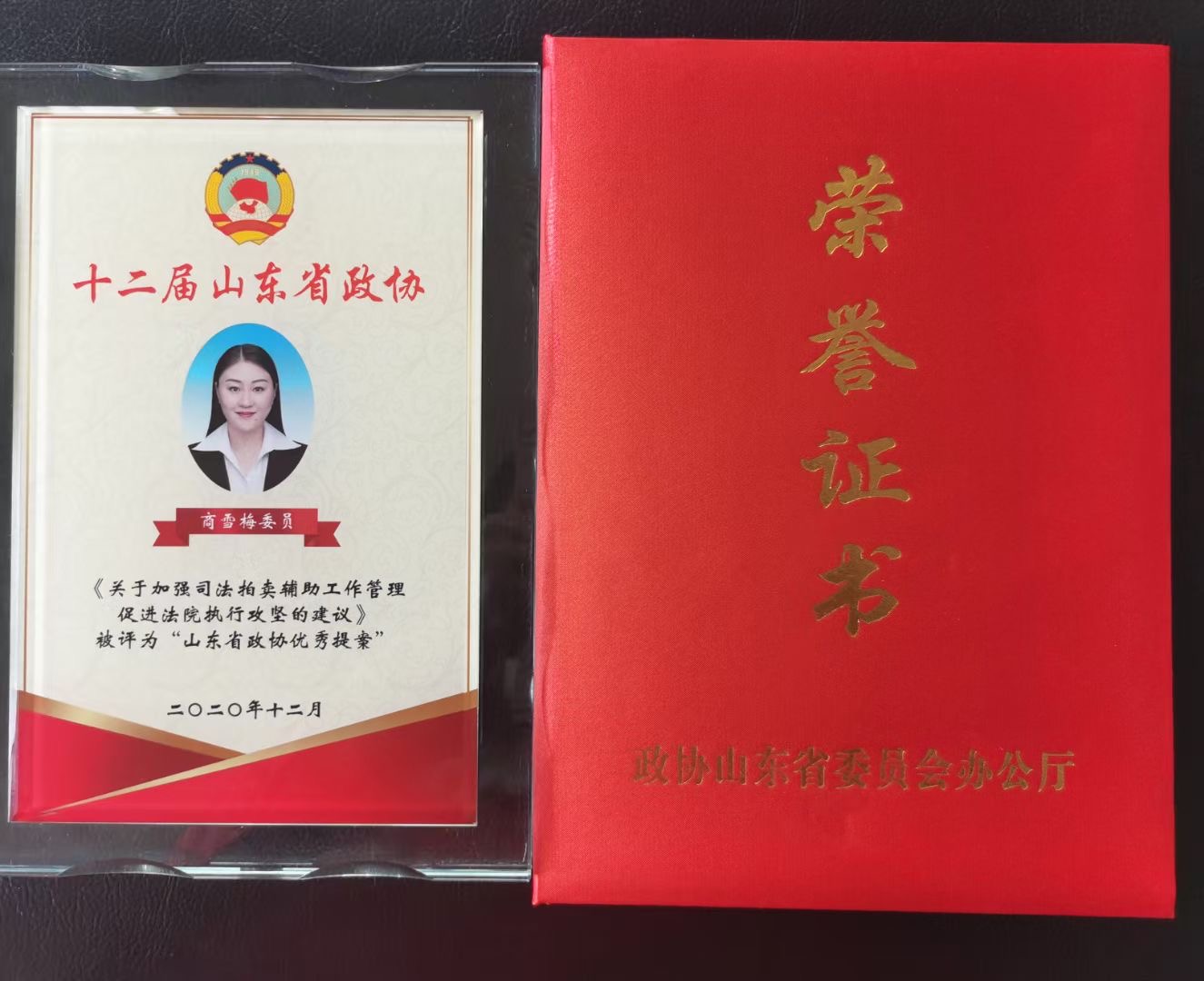 會議表彰了十二屆省政協(xié)以來的優(yōu)秀提案、先進提案承辦單位和先進提案工作者。山東省政協(xié)委員、山東省新的社會階層人士聯(lián)誼會副會長、金諾國拍集團董事長商雪梅撰寫的《關(guān)于加強司法拍賣輔助工作管理促進法院執(zhí)行攻堅的建議》被評為“山東省政協(xié)優(yōu)秀提案”,并在大會上作為唯一一位優(yōu)秀提案代表進行了題為《情系建言路 廖力著文章》的匯報發(fā)言。