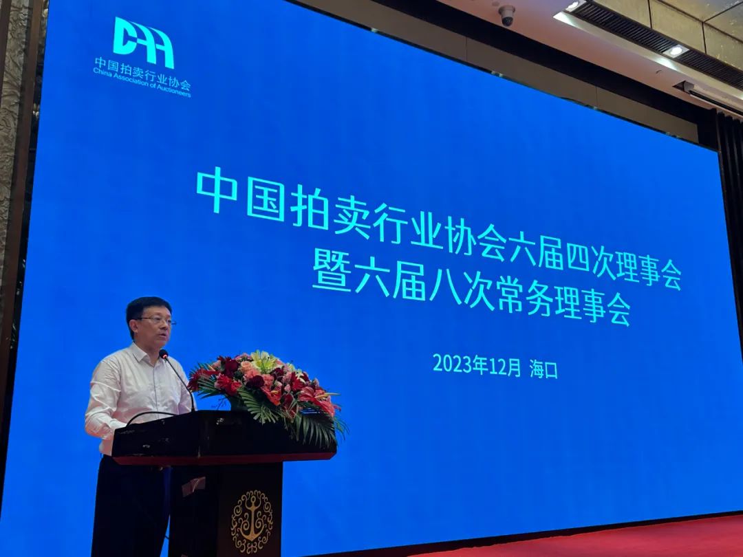 12月16日上午,中國拍賣行業(yè)協(xié)會六屆四次理事會暨六屆八次常務(wù)理事會在??谡匍_。會議以“持續(xù)鞏固拓展主題教育成果,切實將主題教育成效轉(zhuǎn)化為拍賣事業(yè)高質(zhì)量發(fā)展的強大動力和具體實踐,不斷開創(chuàng)拍賣行業(yè)發(fā)展新局面”為主題,回顧總結(jié)2023年行業(yè)發(fā)展情況,研究部署2024年行業(yè)工作重點。中拍協(xié)副會長王中明、法勇生、祁志峰、韓濤、馮明強、王儷潼,特邀副會長苗華甫、劉建民,秘書長賀慧出席會議。監(jiān)事長湯炎非、監(jiān)事李彬雄、白重鑫列席;常務(wù)理事、理事單位及各省市協(xié)會負責人等300余人參加會議。根據(jù)黃小堅會長委托,會議由副會長王中明主持。
